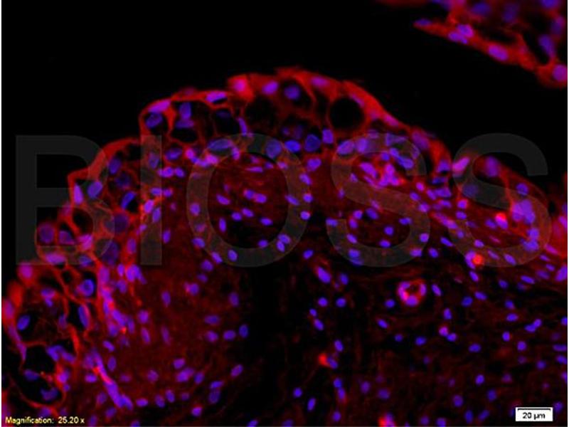 Background: May act as a physical homophilic interaction molecule between intestinal epithelial cells (IECs) and intraepithelial lymphocytes (IELs) at the mucosal epithelium for providing immunological barrier as a first line of defense against mucosal infection. Plays a role in embryonic stem cells proliferation and differentiation. Up-regulates the expression of FABP5, MYC and cyclins A and E (By similarity).
