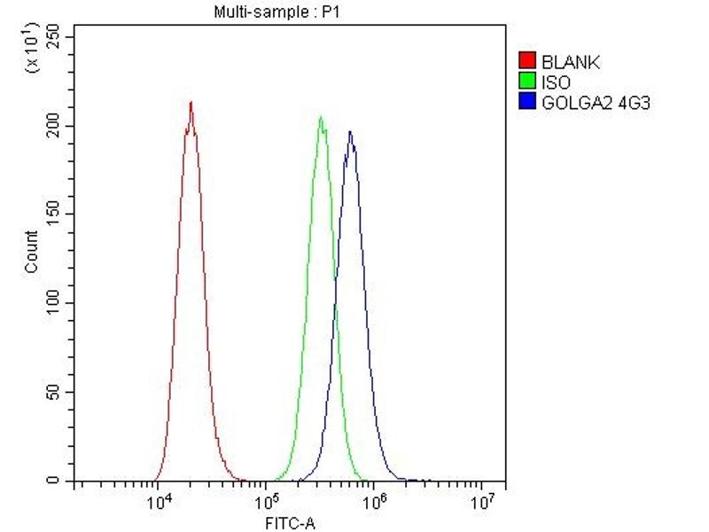 - Anti- GOLGA2 Antibody (monoclonal, 4G3) (ABIN6719432). Tested in Flow Cytometry, IF, IHC, ICC, WB applications. This antibody reacts with Human. This is a premium antibody that guarantees superior quality, high affinity, and strong signals with minimal background in Western blot applications.