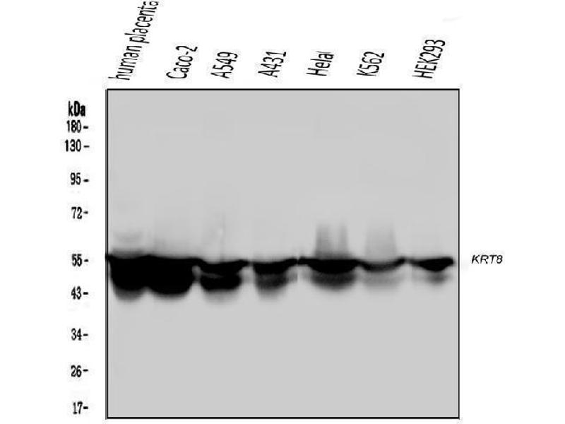 Background: Keratin, type II cytoskeletal 8, also known as cytokeratin-8 (CK-8) or keratin-8 (K8) is a keratin protein that is encoded in humans by the KRT8 gene. This gene is a member of the type II keratin family clustered on the long arm of chromosome 12. Type I and type II keratins heteropolymerize to form intermediate-sized filaments in the cytoplasm of epithelial cells. The product of this gene typically dimerizes with keratin 18 to form an intermediate filament in simple single-layered epithelial cells. This protein plays a role in maintaining cellular structural integrity and also functions in signal transduction and cellular differentiation. Mutations in this gene cause cryptogenic cirrhosis. Alternatively spliced transcript variants have been found for this gene.