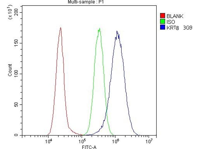 - Anti-Cytokeratin 8 KRT8 Antibody (monoclonal, 3G9) (ABIN6719478). Tested in Flow Cytometry, IF, IHC, IHC-F, ICC, WB applications. This antibody reacts with Human, Mouse, Rat. This is a premium antibody that guarantees superior quality, high affinity, and strong signals with minimal background in Western blot applications.
