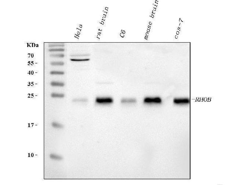 - Anti-RHOB Antibody (ABIN6719538). Tested in IF, IHC, ICC, WB applications. This antibody reacts with Human, Monkey, Mouse, Rat. This is a premium antibody that guarantees superior quality, high affinity, and strong signals with minimal background in Western blot applications.