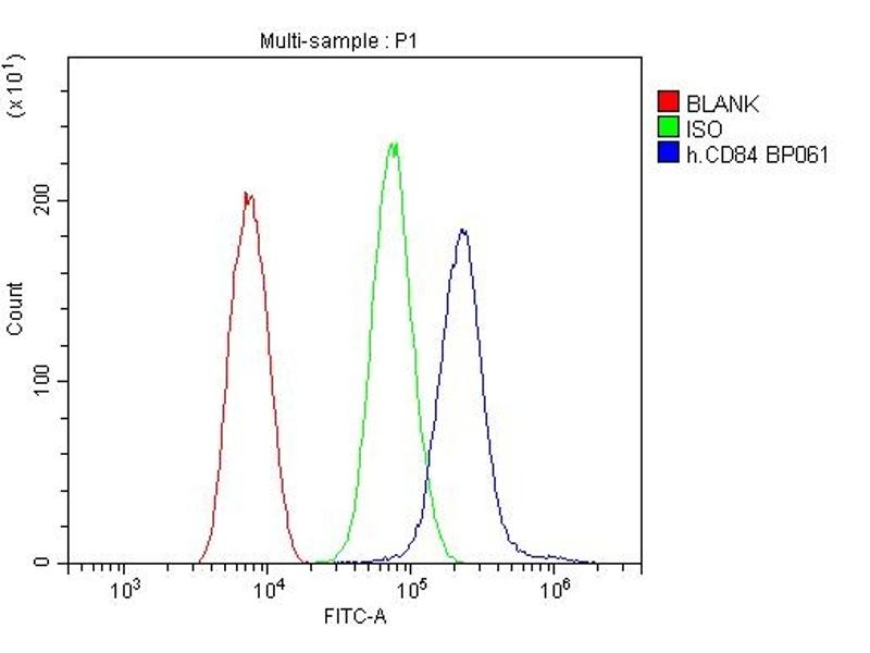 Background: CD84 (Cluster of Differentiation 84) is a human protein encoded by the CD84 gene. This gene encodes a membrane glycoprotein that is a member of the signaling lymphocyte activation molecule (SLAM) family. This family forms a subset of the larger CD2 cell-surface receptor Ig superfamily. The encoded protein is a homophilic adhesion molecule that is expressed in numerous immune cells types and is involved in regulating receptor-mediated signaling in those cells. Alternate splicing results in multiple transcript variants. Members of the CD2 subgroup of the Ig superfamily, such as CD84, have similar patterns of conserved disulfide bonds and function in adhesion interactions between T lymphocytes and accessory cells.