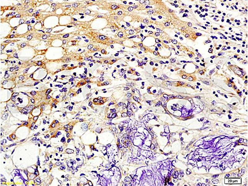 Background: Metastasis suppressor protein in malignant melanomas and in some breast cancers. May regulate events downstream of cell-matrix adhesion, perhaps involving cytoskeletal reorganization. Generates a C-terminally amidated peptide, metastin which functions as the endogenous ligand of the G-protein coupled receptor GPR54. Activation of the receptor inhibits cell proliferation and cell migration, key characteristics of tumor metastasis. Kp-1 is a decapeptide derived from the primary translation product, isolated in conditioned medium of first trimester trophoblast. Kp-1, but not other kisspeptins, increased intracellular Ca(2+) levels in isolated first trimester trophoblasts. Kp-1 is a paracrine/endocrine regulator in fine-tuning trophoblast invasion generated by the trophoblast itself. The receptor is also essential for normal gonadotropin-released hormone physiology and for puberty. The hypothalamic KiSS1/GPR54 system is a pivotal factor in central regulation of the gonadotropic axis at puberty and in adulthood.
