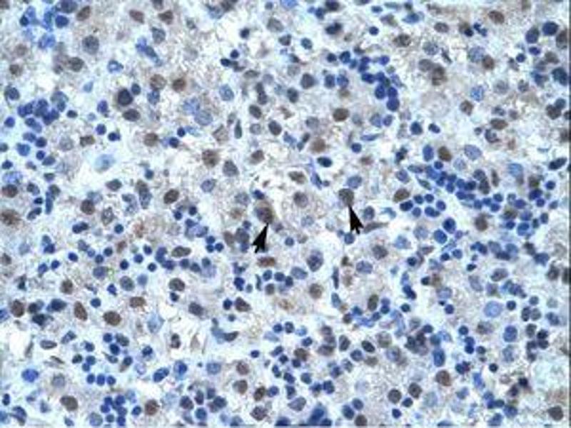 Synthetic peptide from N-Terminus of human CDC25B (P30305, NP_068659). Percent identity by BLAST analysis: Human, Chimpanzee, Monkey, Marmoset, Guinea pig (100%), Gorilla, Pig (92%), Horse (90%), Panda, Rabbit (84%).