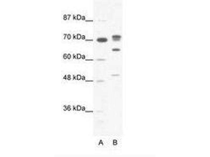 Synthetic peptide from N-Terminus of human DDX21 (Q9NR30, NP_004719). Percent identity by BLAST analysis: Human, Chimpanzee, Gorilla (100%), Gibbon, Monkey, Marmoset (92%).
