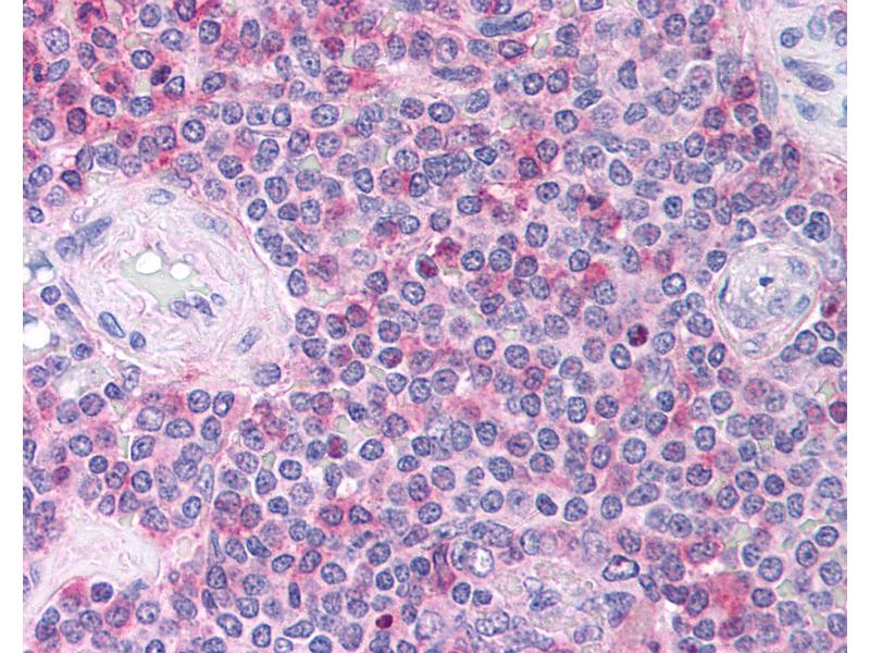 Usage: Immunohistochemistry: This antibody was validated for use in immunohistochemistry on a panel of 21 formalin-fixed, paraffin-embedded (FFPE) human tissues after heat induced antigen retrieval in pH 6.0 citrate buffer. After incubation with the primary antibody, slides were incubated with biotinylated secondary antibody, followed by alkaline phosphatase-streptavidin and chromogen. The stained slides were evaluated by a pathologist to confirm staining specificity. The optimal working concentration for this antibody was determined to be 10 μg/mL. -