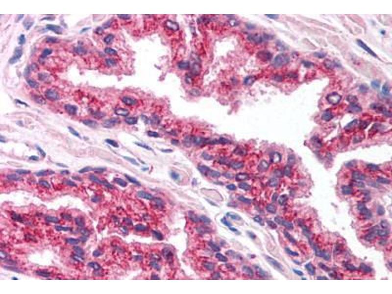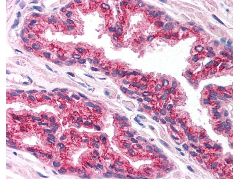 Usage: Immunohistochemistry: This antibody was validated for use in immunohistochemistry on a panel of 21 formalin-fixed, paraffin-embedded (FFPE) human tissues after heat induced antigen retrieval in pH 6.0 citrate buffer. After incubation with the primary antibody, slides were incubated with biotinylated secondary antibody, followed by alkaline phosphatase-streptavidin and chromogen. The stained slides were evaluated by a pathologist to confirm staining specificity. The optimal working concentration for this antibody was determined to be 5 μg/mL. -
