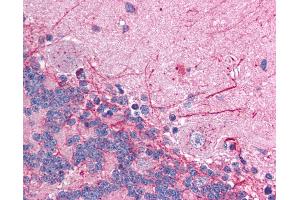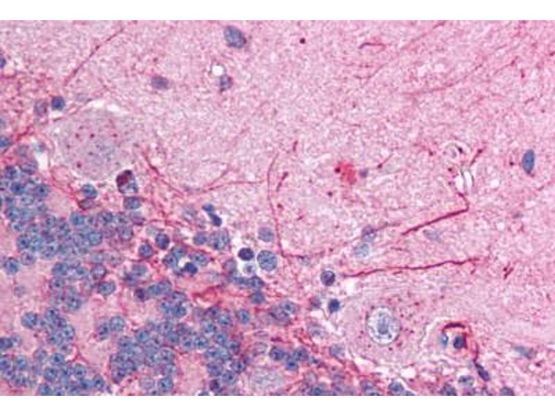Usage: Immunohistochemistry: This antibody was validated for use in immunohistochemistry on a panel of 21 formalin-fixed, paraffin-embedded (FFPE) human tissues after heat induced antigen retrieval in pH 6.0 citrate buffer. After incubation with the primary antibody, slides were incubated with biotinylated secondary antibody, followed by alkaline phosphatase-streptavidin and chromogen. The stained slides were evaluated by a pathologist to confirm staining specificity. The optimal working concentration for this antibody was determined to be 2.5 μg/mL. -