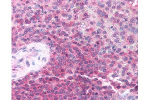 Usage: Immunohistochemistry: This antibody was validated for use in immunohistochemistry on a panel of 21 formalin-fixed, paraffin-embedded (FFPE) human tissues after heat induced antigen retrieval in pH 6.0 citrate buffer. After incubation with the primary antibody, slides were incubated with biotinylated secondary antibody, followed by alkaline phosphatase-streptavidin and chromogen. The stained slides were evaluated by a pathologist to confirm staining specificity. The optimal working concentration for this antibody was determined to be 2.5 μg/mL. -