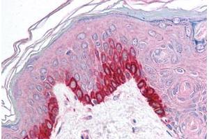 Usage: Immunohistochemistry: This antibody was validated for use in immunohistochemistry on a panel of 21 formalin-fixed, paraffin-embedded (FFPE) human tissues after heat induced antigen retrieval in pH 6.0 citrate buffer. After incubation with the primary antibody, slides were incubated with biotinylated secondary antibody, followed by alkaline phosphatase-streptavidin and chromogen. The stained slides were evaluated by a pathologist to confirm staining specificity. The optimal working concentration for this antibody was determined to be 2.5 μg/mL. -