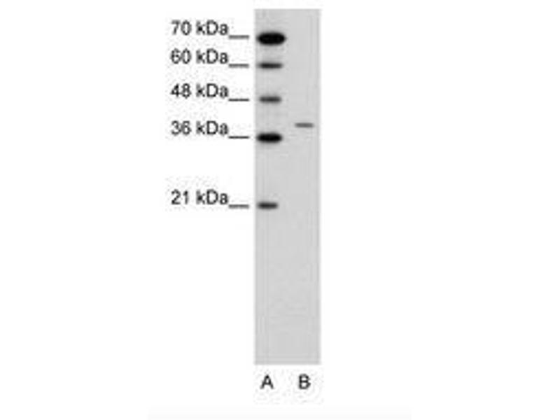 Synthetic peptide from N-Terminus of human RAPSN (Q13702-2, NP_116034). Percent identity by BLAST analysis: Human, Chimpanzee, Gorilla, Gibbon, Monkey, Galago, Marmoset, Mouse, Rat, Elephant, Panda, Dog, Bovine, Rabbit, Horse, Guinea pig, Platypus, Lizard, Stickleback, Zebrafish (100%), Opossum, Turkey, Zebra finch, Chicken, Xenopus (92%).