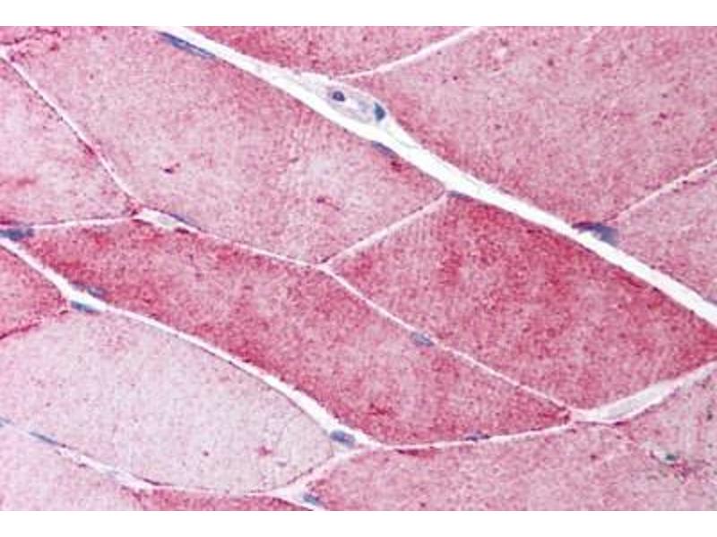 Synthetic peptide from N-Terminus of human CAV3 (P56539, NP_001225). Percent identity by BLAST analysis: Human, Chimpanzee, Gorilla, Gibbon, Monkey, Panda, Bovine, Rabbit, Horse (100%), Bat, Pig, Guinea pig (92%), Elephant (86%), Galago, Mouse, Rat (84%).