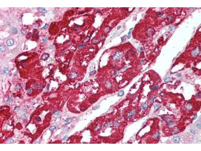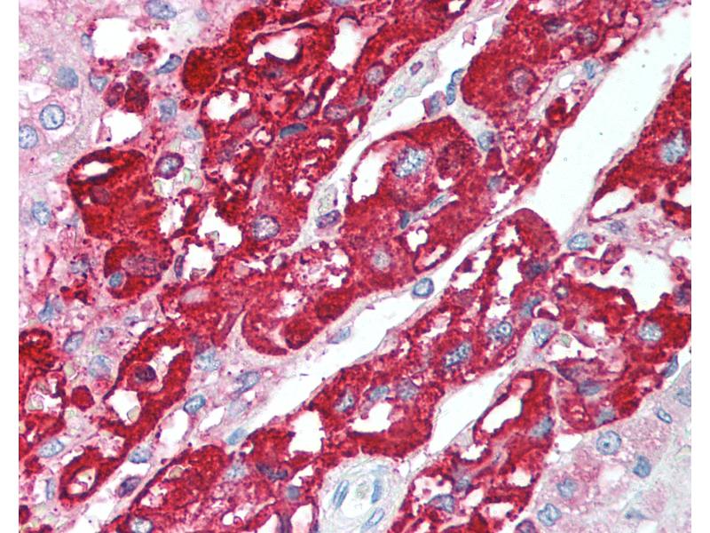 Usage: Immunohistochemistry: This antibody was validated for use in immunohistochemistry on a panel of 21 formalin-fixed, paraffin-embedded (FFPE) human tissues after heat induced antigen retrieval in  pH 6.0 citrate buffer. After incubation with the primary antibody, slides were incubated with biotinylated secondary antibody, followed by alkaline phosphatase-streptavidin and chromogen. The stained slides were evaluated by a pathologist to confirm staining specificity. The optimal working concentration for this antibody was determined to be 5 μg/mL.
