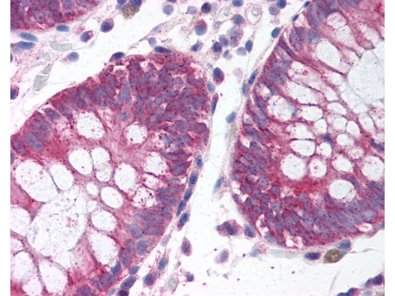 Usage: Immunohistochemistry: This antibody was validated for use in immunohistochemistry on a panel of 21 formalin-fixed, paraffin-embedded (FFPE) human tissues after heat induced antigen retrieval in pH 6.0 citrate buffer. After incubation with the primary antibody, slides were incubated with biotinylated secondary antibody, followed by alkaline phosphatase-streptavidin and chromogen. The stained slides were evaluated by a pathologist to confirm staining specificity. The optimal working concentration for this antibody was determined to be 5 μg/mL. -