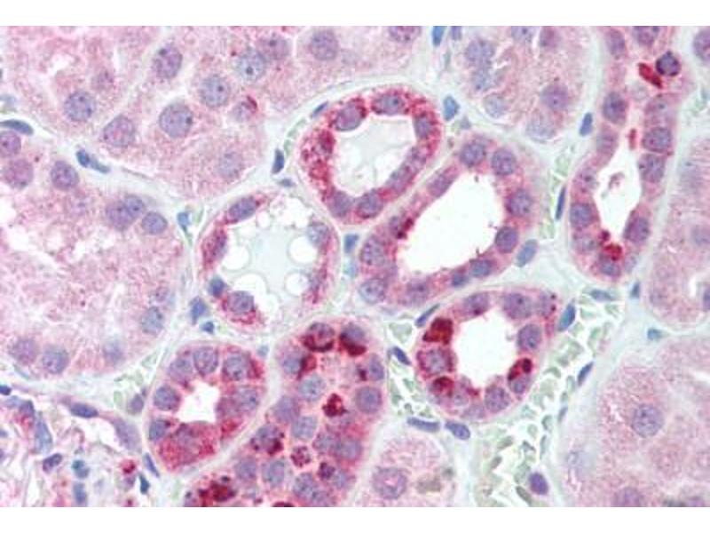 Usage: Immunohistochemistry: This antibody was validated for use in immunohistochemistry on a panel of 21 formalin-fixed, paraffin-embedded (FFPE) human tissues after heat induced antigen retrieval in pH 6.0 citrate buffer. After incubation with the primary antibody, slides were incubated with biotinylated secondary antibody, followed by alkaline phosphatase-streptavidin and chromogen. The stained slides were evaluated by a pathologist to confirm staining specificity. The optimal working concentration for this antibody was determined to be 5 μg/mL. -