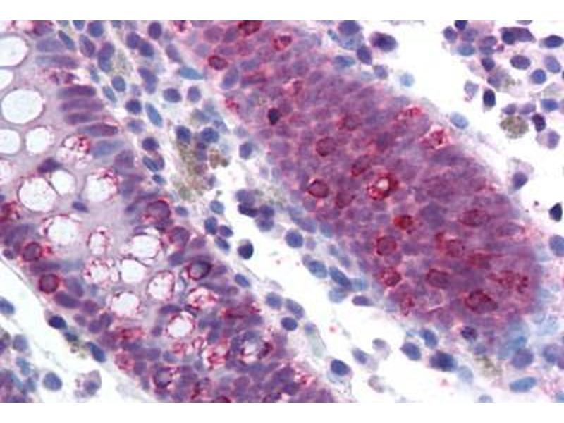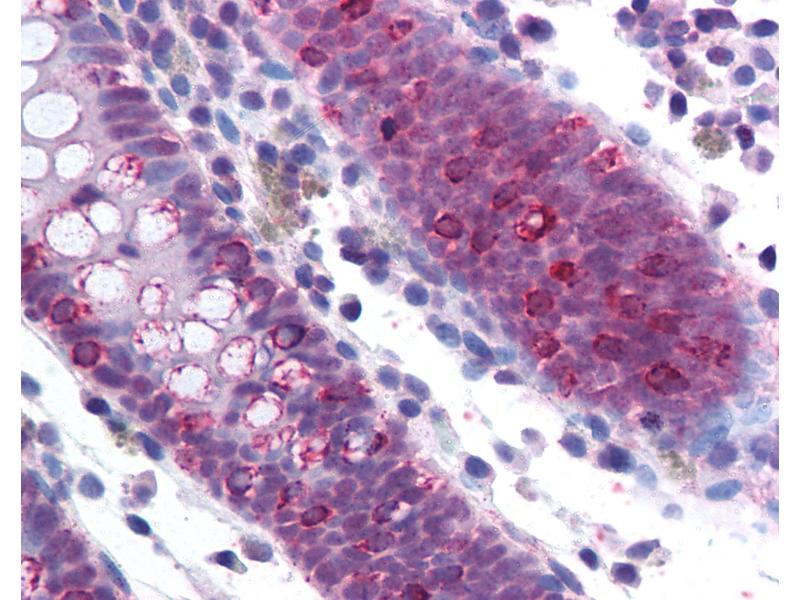 Usage: Immunohistochemistry: This antibody was validated for use in immunohistochemistry on a panel of 21 formalin-fixed, paraffin-embedded (FFPE) human tissues after heat induced antigen retrieval in pH 6.0 citrate buffer. After incubation with the primary antibody, slides were incubated with biotinylated secondary antibody, followed by alkaline phosphatase-streptavidin and chromogen. The stained slides were evaluated by a pathologist to confirm staining specificity. The optimal working concentration for this antibody was determined to be 5 μg/mL. -