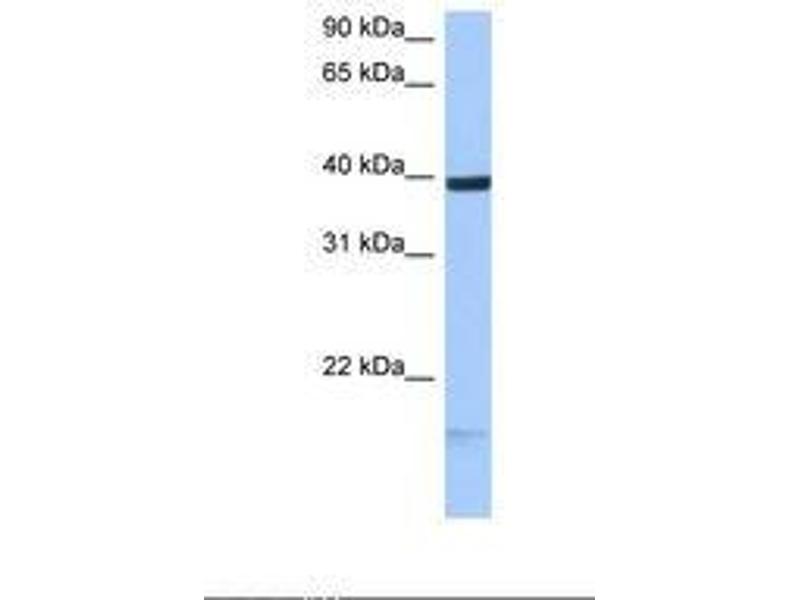 Synthetic peptide from C-Terminus of human HS3ST5 (Q8IZT8, NP_705840). Percent identity by BLAST analysis: Human, Chimpanzee, Gorilla, Gibbon, Monkey, Galago, Marmoset, Mouse, Rat, Elephant, Panda, Dog, Bovine, Bat, Rabbit, Horse, Pig, Opossum, Guinea pig, Platypus, Xenopus, Stickleback, Pufferfish (100%), Turkey, Zebra finch, Chicken, Lizard (92%).