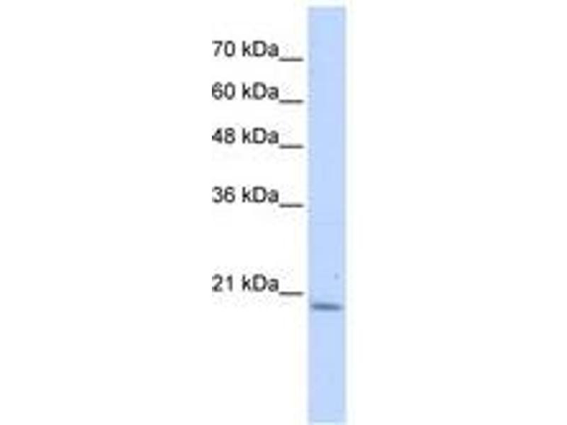 Synthetic peptide from N-Terminus of human PFDN6 (O15212, NP_055075). Percent identity by BLAST analysis: Human, Chimpanzee, Gorilla, Gibbon, Monkey, Marmoset, Mouse, Rat, Sheep, Hamster, Elephant, Panda, Dog, Bovine, Bat, Rabbit, Horse, Pig, Guinea pig (100%), Opossum, Xenopus, Catfish, Zebrafish (92%), Frog (90%), Trout, Salmon, Pike (85%).