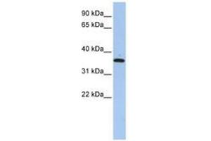 Synthetic peptide from N-Terminus of human FAM84A (Q96KN4, NP_660158). Percent identity by BLAST analysis: Human, Chimpanzee, Gibbon, Monkey, Galago, Marmoset, Mouse, Rat, Elephant, Dog, Bovine, Bat, Rabbit, Pig, Guinea pig, Zebra finch, Chicken, Zebrafish (100%), Opossum, Platypus, Lizard, Xenopus, Stickleback (92%).