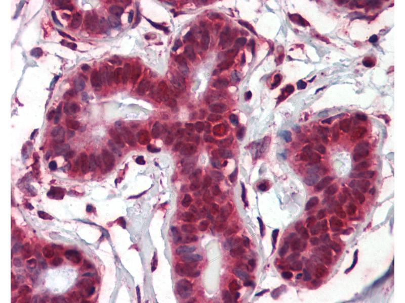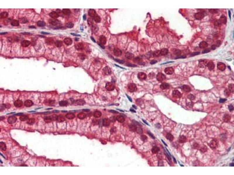 Usage: Immunohistochemistry: This antibody was validated for use in immunohistochemistry on a panel of 21 formalin-fixed, paraffin-embedded (FFPE) human tissues after heat induced antigen retrieval in pH 6.0 citrate buffer. After incubation with the primary antibody, slides were incubated with biotinylated secondary antibody, followed by alkaline phosphatase-streptavidin and chromogen. The stained slides were evaluated by a pathologist to confirm staining specificity. The optimal working concentration for this antibody was determined to be 5 μg/mL. -