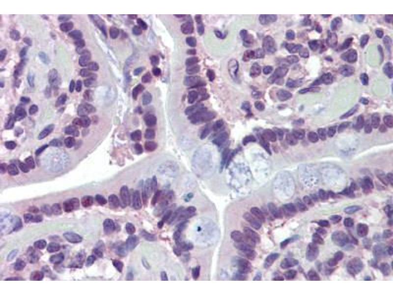 Usage: Immunohistochemistry: This antibody was validated for use in immunohistochemistry on a panel of 21 formalin-fixed, paraffin-embedded (FFPE) human tissues after heat induced antigen retrieval in pH 6.0 citrate buffer. After incubation with the primary antibody, slides were incubated with biotinylated secondary antibody, followed by alkaline phosphatase-streptavidin and chromogen. The stained slides were evaluated by a pathologist to confirm staining specificity. The optimal working concentration for this antibody was determined to be 10 μg/mL. Western Blot: Suggested dilution at 1 μg/mL in 5 % skim milk / PBS buffer, and HRP conjugated anti-Rabbit IgG should be diluted in 1:50000 - 100000 as second antibody. ELISA titer in peptide based assay: 1:312500. -