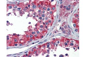 Synthetic peptide located between aa180-229 of human NPY1R (P25929, NP_000900). Percent identity by BLAST analysis: Human, Chimpanzee, Gorilla, Gibbon, Monkey, Marmoset (100%), Galago, Sheep, Elephant, Panda, Dog, Bovine, Rabbit, Pig, Guinea pig (92%), Hamster (85%), Mouse, Rat (78%).