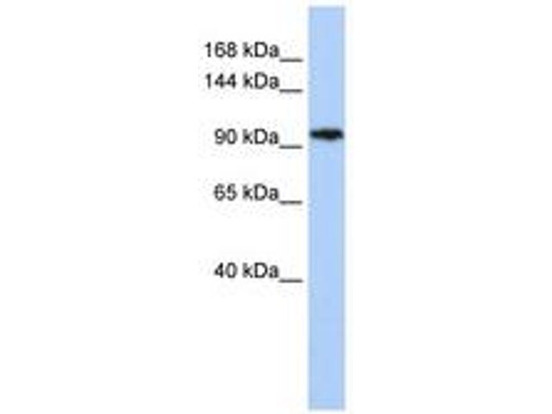 Synthetic peptide located between aa108-157 of human MYRF (Q9Y2G1, NP_037411). Percent identity by BLAST analysis: Human, Chimpanzee, Gorilla, Gibbon, Monkey, Marmoset, Mouse, Elephant, Panda, Dog, Bovine, Bat, Rabbit, Horse, Pig, Guinea pig, Turkey, Zebra finch, Chicken, Platypus, Xenopus (100%), Stickleback (85%).