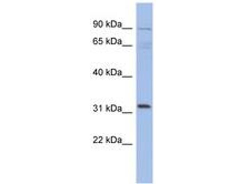 Synthetic peptide from N-Terminus of human TBC1D14 (Q9P2M4, NP_001106832). Percent identity by BLAST analysis: Human, Gorilla, Marmoset (100%), Gibbon, Panda, Bovine, Horse (92%), Elephant, Dog, Bat (84%).