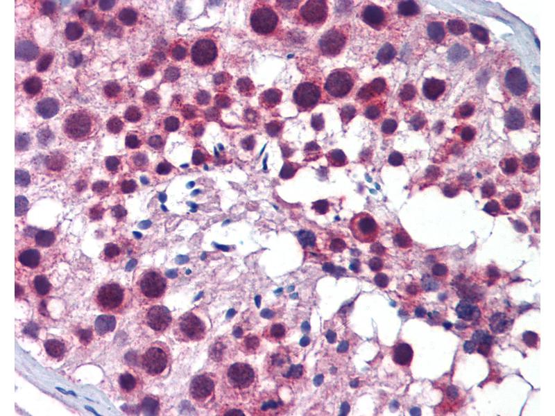 Synthetic peptide from C-Terminus of human PLK1 (P53350, NP_005021). Percent identity by BLAST analysis: Human, Chimpanzee, Gorilla, Gibbon, Monkey, Mouse, Hamster, Elephant, Rabbit (100%), Galago, Marmoset, Rat, Dog, Bovine, Bat, Horse, Opossum (92%), Guinea pig (85%).