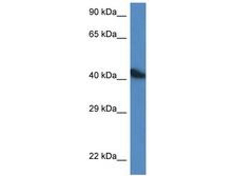 Synthetic peptide from C-Terminus of human ACTA1 (P68133, NP_001091). Percent identity by BLAST analysis: Human, Chimpanzee, Gorilla, Orangutan, Gibbon, Monkey, Galago, Marmoset, Mouse, Rat, Hamster, Elephant, Panda, Dog, Bovine, Bat, Rabbit, Horse, Pig, Opossum, Guinea pig, Turkey, Zebra finch, Chicken, Platypus, Lizard, Xenopus, Catfish, Salmon, Stickleback, Medaka, Pike, Pufferfish, Zebrafish, Sea squirt (100%).