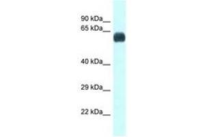 Synthetic peptide located between aa400-449 of mouse LOC640502 (Q91YN5). Percent identity by BLAST analysis: Human, Chimpanzee, Gorilla, Monkey, Galago, Marmoset, Mouse, Rat, Elephant, Panda, Dog, Bovine, Bat, Rabbit, Horse, Pig, Opossum, Guinea pig, Turkey, Zebra finch, Chicken, Xenopus (100%), Zebrafish (92%).
