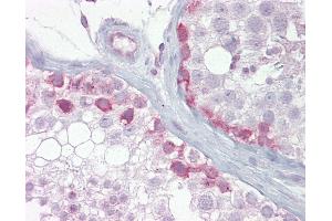 Synthetic peptide located between aa72-121 of human SYCP1 (Q15431, NP_003167). Percent identity by BLAST analysis: Human, Gorilla, Gibbon, Monkey (100%), Galago, Marmoset, Panda, Dog, Bovine, Bat, Horse, Pig (92%), Guinea pig (85%), Mouse, Rat (78%).