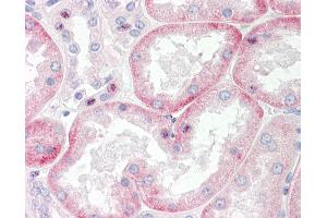 Synthetic peptide from C-Terminus of human SLC22A6 (Q4U2R8, NP_004781). Percent identity by BLAST analysis: Human, Chimpanzee, Gorilla, Orangutan, Gibbon, Monkey, Galago, Mouse, Rat, Bovine, Rabbit, Horse, Pig (100%), Marmoset, Elephant, Panda, Dog (92%), Guinea pig (85%), Salmon, Zebrafish (84%).