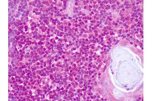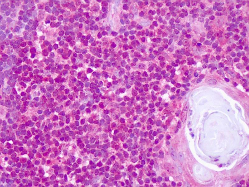 Synthetic peptide from N-Terminus of human TCF4 (P15884, NP_003190). Percent identity by BLAST analysis: Human, Chimpanzee, Gorilla, Gibbon, Marmoset, Mouse, Elephant, Horse, Pig, Opossum, Guinea pig (100%), Rat, Xenopus, Stickleback (92%), Monkey, Hamster, Panda, Bovine, Zebra finch, Chicken, Salmon (85%), Catfish, Zebrafish (84%), Galago, Dog, Bat (83%).