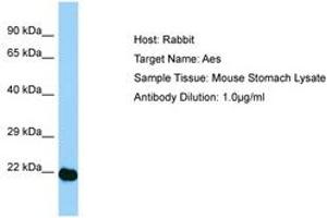 Synthetic peptide from N-Terminus of mouse Aes (P63002, NP_034477). Percent identity by BLAST analysis: Human, Chimpanzee, Gorilla, Orangutan, Monkey, Galago, Marmoset, Mouse, Rat, Elephant, Dog, Bovine, Opossum, Guinea pig, Platypus, Xenopus, Frog (100%).