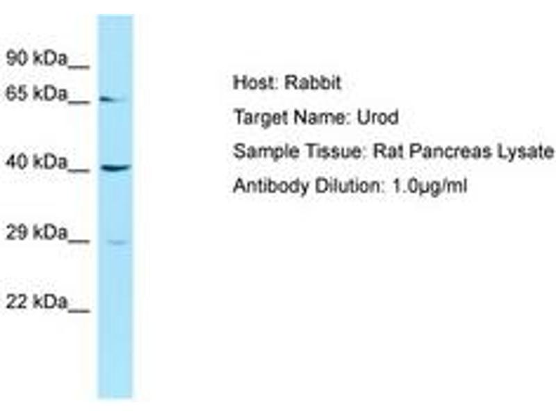 Synthetic peptide located between aa51-100 of rat Urod (B0BN55, NP_062082). Percent identity by BLAST analysis: Human, Chimpanzee, Mouse, Rat, Sheep, Bovine, Rabbit, Guinea pig (100%).