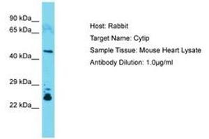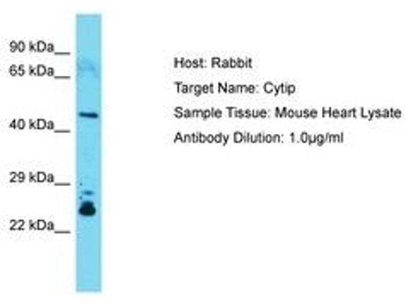 Synthetic peptide from C-Terminus of mouse Cytip (Q91VY6, NP_631939). Percent identity by BLAST analysis: Mouse (100%).