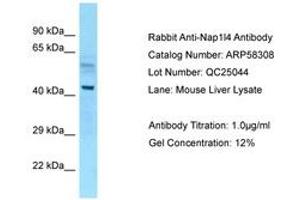 Synthetic peptide located between aa89-138 of mouse Nap1l4 (Q78ZA7, NP_032698). Percent identity by BLAST analysis: Human, Chimpanzee, Gorilla, Orangutan, Gibbon, Monkey, Marmoset, Mouse, Rat, Elephant, Panda, Dog, Bovine, Rabbit, Horse, Pig, Guinea pig (100%), Bat (92%), Opossum (85%).