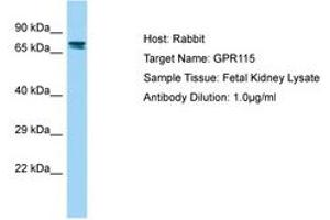 Synthetic peptide from N-Terminus of human GPR115 (Q8IZF3, NP_722580). Percent identity by BLAST analysis: Human, Chimpanzee, Gorilla, Orangutan, Gibbon, Monkey (100%), Horse (92%), Marmoset, Dog, Rabbit (85%).