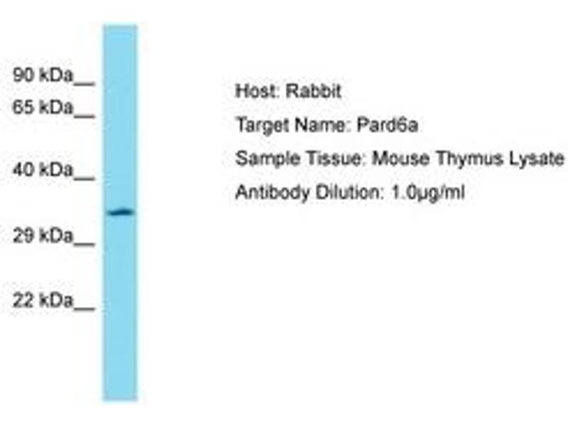 Synthetic peptide located between aa251-300 of mouse Pard6a (D3Z2R1, NP_001040901). Percent identity by BLAST analysis: Mouse (100%).