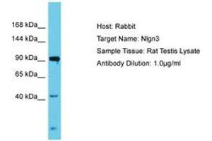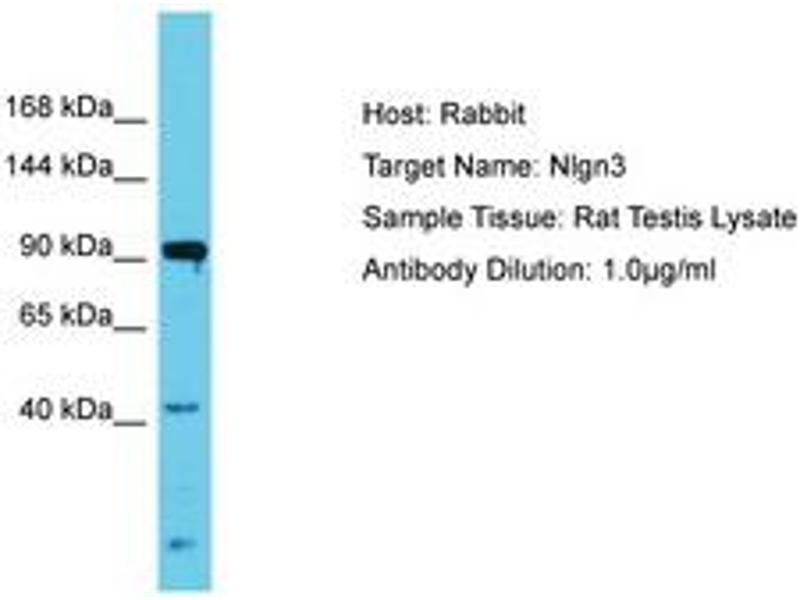 Synthetic peptide located between aa178-227 of rat Nlgn3 (Q62889, NP_599163). Percent identity by BLAST analysis: Mouse, Rat, Bovine, Rabbit, Horse, Pig, Guinea pig, Chicken (100%).