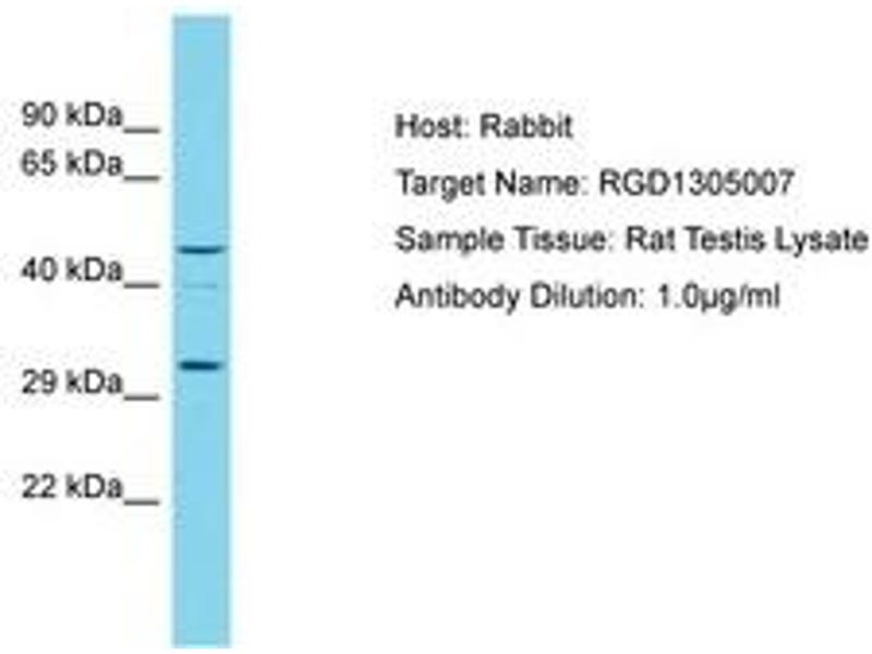 Synthetic peptide located between aa95-144 of rat Ogfod3 (Q5M843, NP_001013998). Percent identity by BLAST analysis: Mouse, Rat (100%).