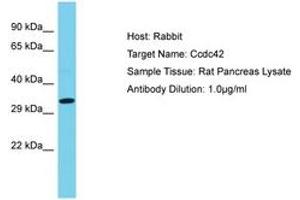 Synthetic peptide located between aa161-210 of rat Ccdc42 (D3ZAZ8, NP_001100479). Percent identity by BLAST analysis: Rat (100%).