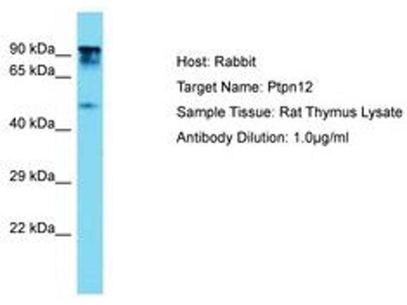 Synthetic peptide located between aa591-640 of rat Ptpn12 (G3V7Q4, NP_476456). Percent identity by BLAST analysis: Rat (100%).
