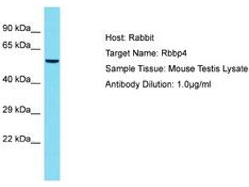 Synthetic peptide from C-Terminus of mouse Rbbp4 (Q60972, NP_033056). Percent identity by BLAST analysis: Human, Chimpanzee, Mouse, Rat, Bovine, Rabbit, Horse, Pig, Guinea pig (100%).