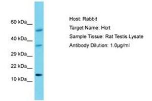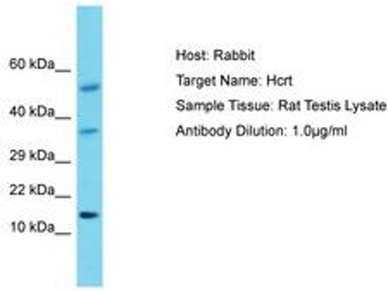 Synthetic peptide located between aa45-94 of rat Hcrt (O55232, NP_037311). Percent identity by BLAST analysis: Mouse, Rat (100%).