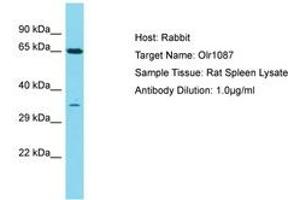 Synthetic peptide from C-Terminus of rat Olr1087 (D3ZZN7, NP_001000418). Percent identity by BLAST analysis: Mouse, Rat (100%).
