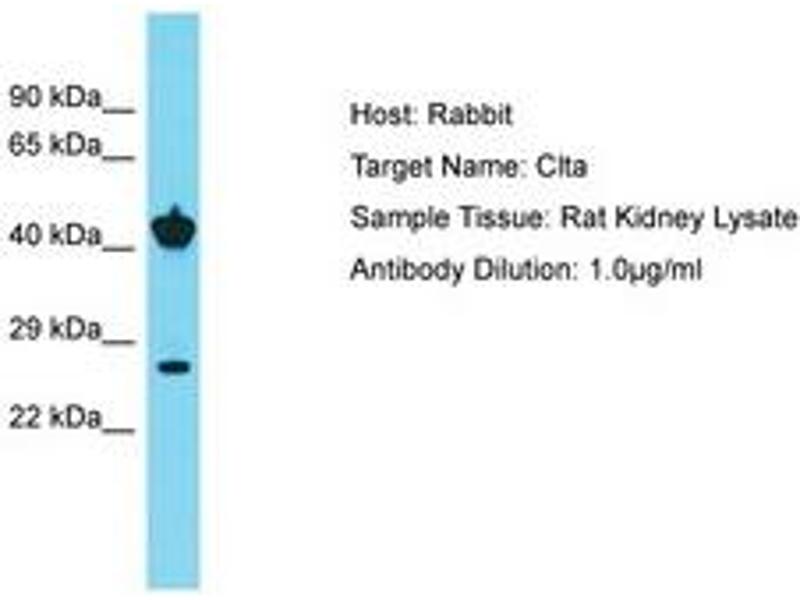 Synthetic peptide from C-Terminus of rat Clta (P08081, NP_114180). Percent identity by BLAST analysis: Human, Chimpanzee, Mouse, Rat, Rabbit, Horse (100%).