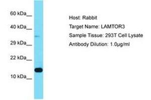 Synthetic peptide located between aa13-62 of human LAMTOR3 (Q9UHA4, NP_068805). Percent identity by BLAST analysis: Human, Chimpanzee, Bovine, Rabbit, Horse, Pig, Chicken (100%).