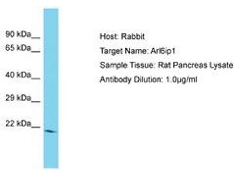 Synthetic peptide located between aa69-118 of rat Arl6ip1 (Q7TMZ5, NP_942032). Percent identity by BLAST analysis: Human, Chimpanzee, Mouse, Rat, Sheep, Bovine, Pig (100%).